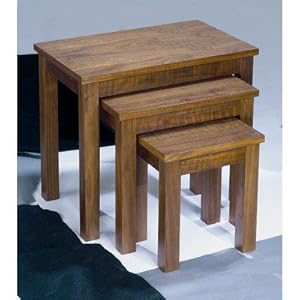 Malvern 3Table Still very much considered an in vogue timber, Walnut undoubtedly brings an elegance, sophistication and decadence to any environment it adorns. This stylish range of Walnut veneered furniture will capture the imagination of fashion conscious consumers keen to reflect current design trends in their living environment. The offering includes a complete bedroom collection along with several eye-catching pieces of dining and occasional furniture. Features: -Nest of three table. -Occasional range. -Material: Walnut veneer. -Finish: Walnut. -Walnut undoubtedly brings an elegance, sophistication and decadence to any environment it adorns. -Assembly required. Specifications: -Large table dimensions: 47 cm H x 34.3 cm W x 53.4 cm D. -Medium table dimensions: 40 cm H x 29.2 cm W x 40.6 cm D. -Small table dimensions: 32.4 cm H x 24.2 cm W x 28.6 cm D.